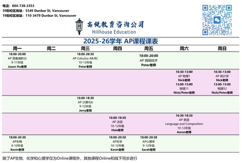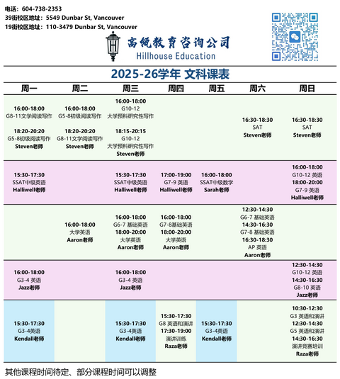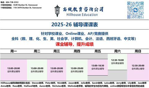 我们Hillhouse教育咨询公司近二十年来,面向大温地区和美国顶尖私立学校 ,来自九十多个学校(公、私立中、小学和大学)、七百多位学生。我们Hillhouse的毕业生中最小是从三、四年级来到Hillhouse直至毕业。至今为止,他们全部进入美国名校。而今,也有一些Hillhouse学生的弟弟妹妹们、侄儿们从幼儿园开始就来到了Hillhouse……我们积累了丰富的经验和教训。