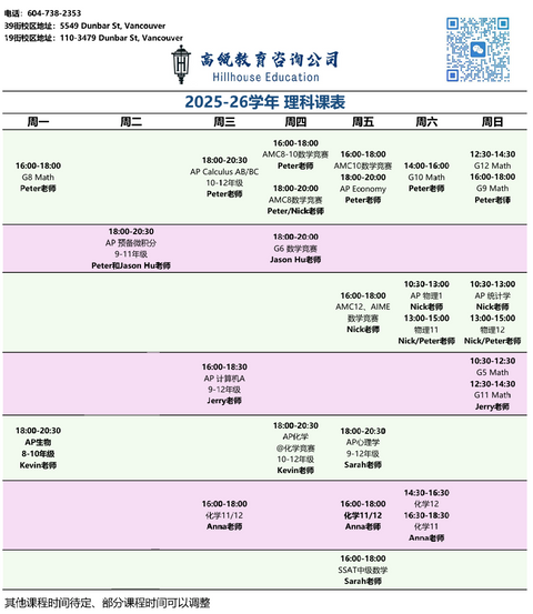 我们Hillhouse教育咨询公司近二十年来,面向大温地区和美国顶尖私立学校 ,来自九十多个学校(公、私立中、小学和大学)、七百多位学生。我们Hillhouse的毕业生中最小是从三、四年级来到Hillhouse直至毕业。至今为止,他们全部进入美国名校。而今,也有一些Hillhouse学生的弟弟妹妹们、侄儿们从幼儿园开始就来到了Hillhouse……我们积累了丰富的经验和教训。