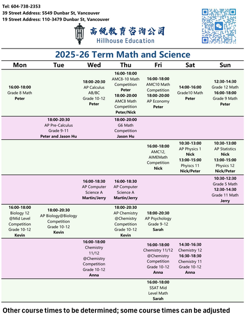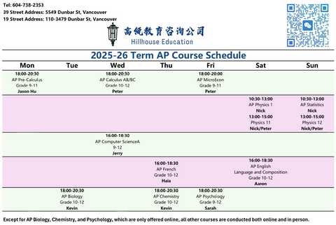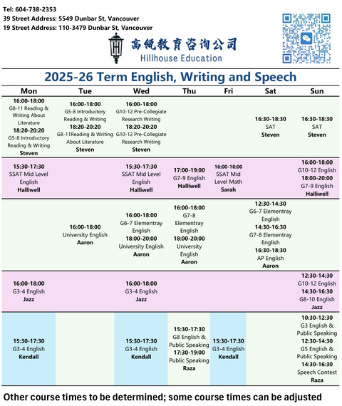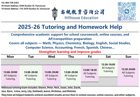 For nearly twenty years, Hillhouse Education Consulting has provided comprehensive tutoring to over 700 students from more than 90 schools (both public and private, from elementary to university) across the Greater Vancouver area and top private schools in the United States.